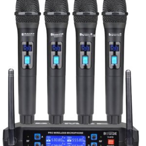 Système de microphone sans fil VHF 4 canaux haute qualité – audio professionnel pour chant, réunion, mariage et karaoké maison.